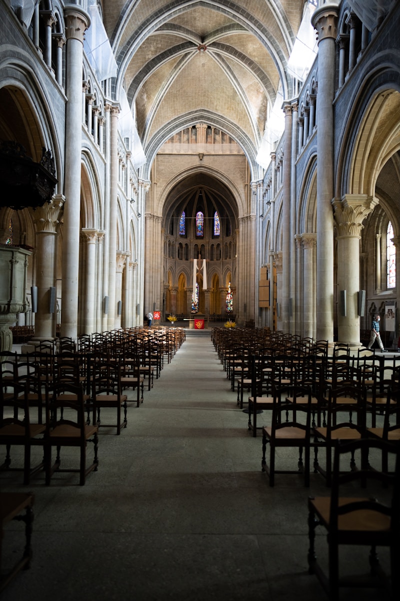 Entrer dans la cathédrale, c’est accepter de se taire. Même les pas deviennent prudents. La lumière filtre, blanche ou dorée selon l’heure, glissant sur la pierre claire, dessinant des ombres lentes. Ici, le temps n’est pas aboli : il est dilaté.
